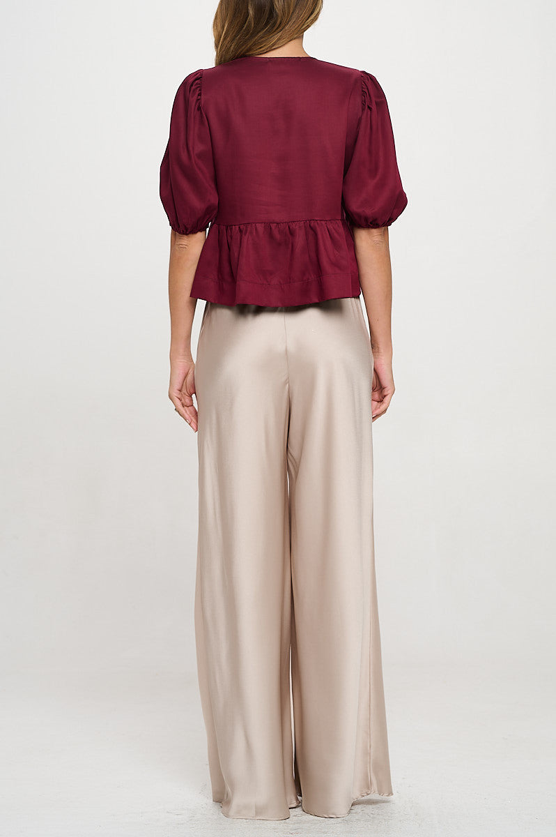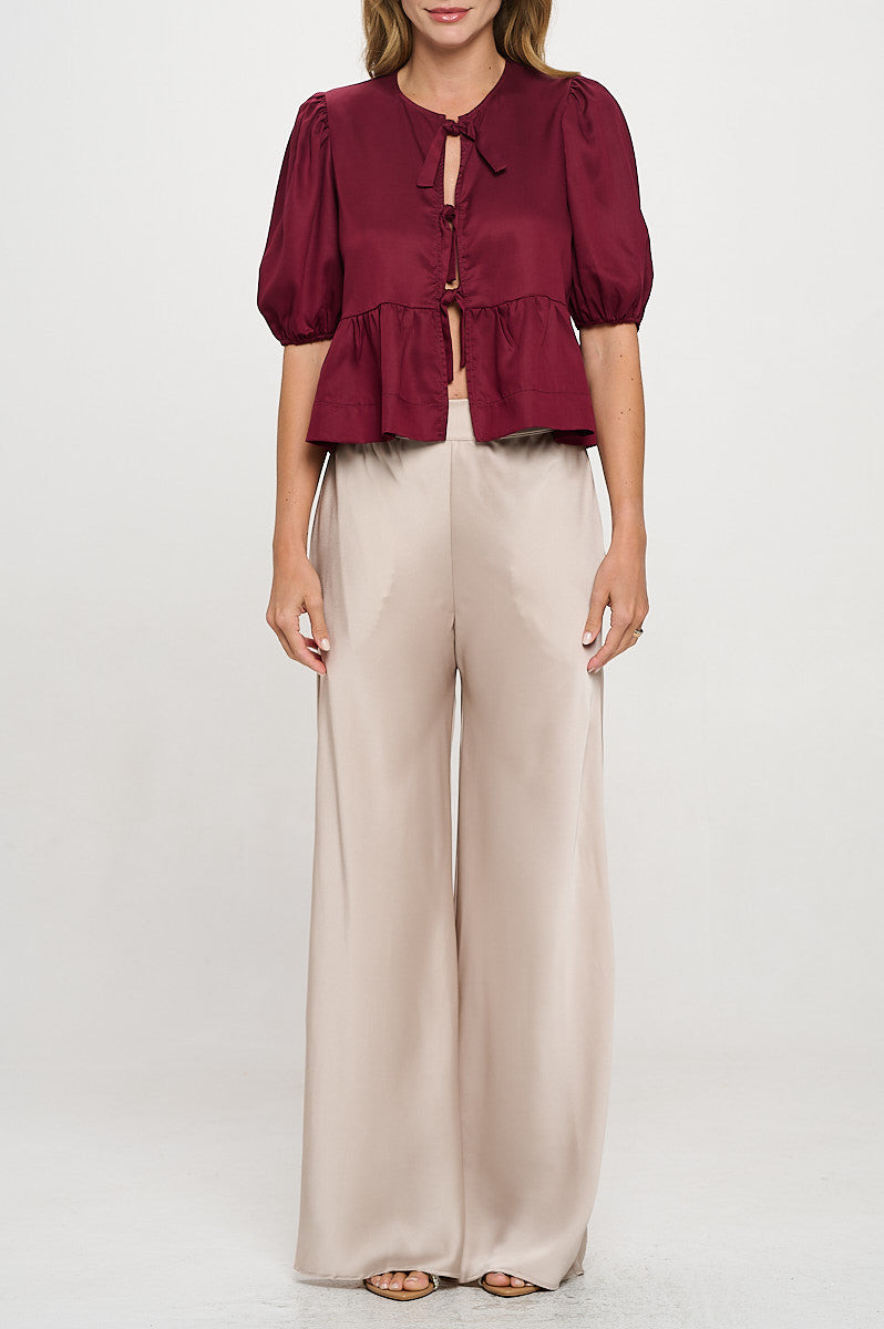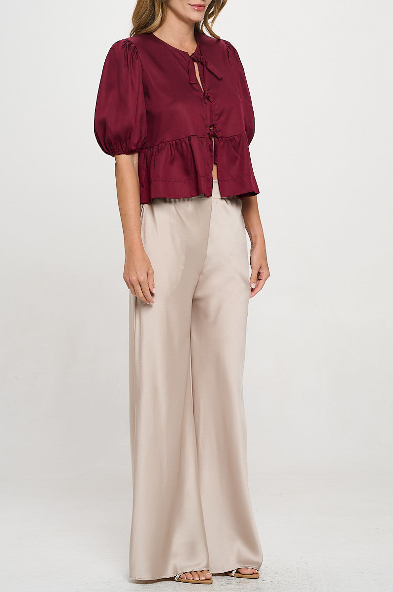 Made in USA Tencel Puff Sleeve Top with Front Bow Detail. Available in other Colors. Fabric content: 100% Tencel.