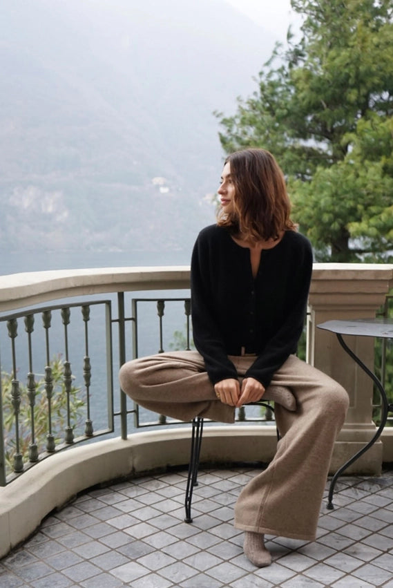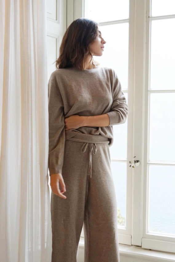 Upgrade your loungewear game with our Rocio Cashmere Pants. Made from 100% Mongolian cashmere, these wide leg pants provide ultimate comfort and style. With an elastic waistband and tie string, they offer versatility in sizing. Plus, for every order made, we plant a tree in the Amazon Rainforest. Complete the look with our Cashmere Crew Sweater.