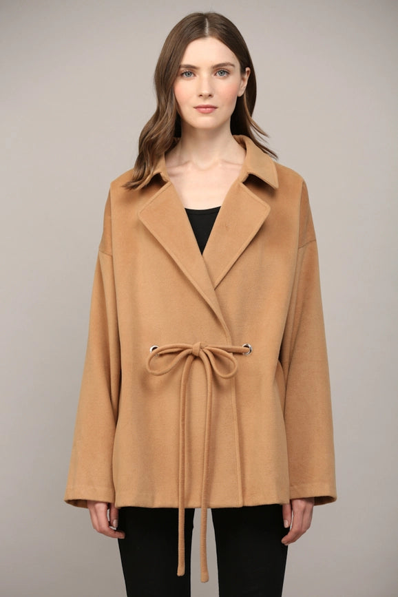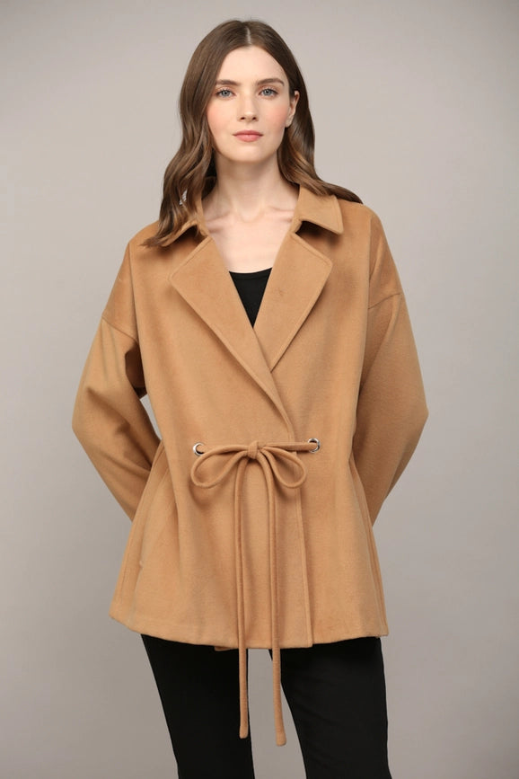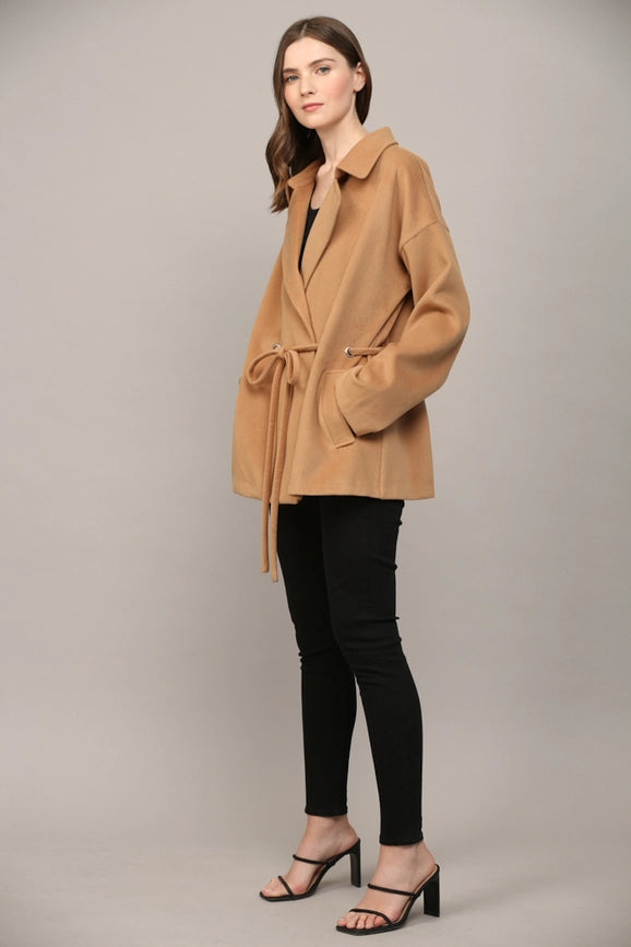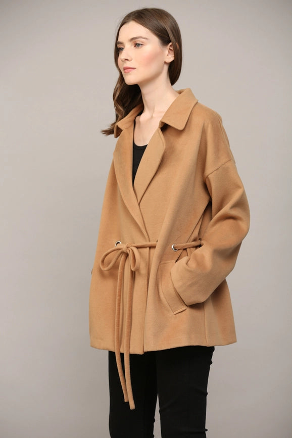 Tie Closure At the Waist Classic Collar Coat