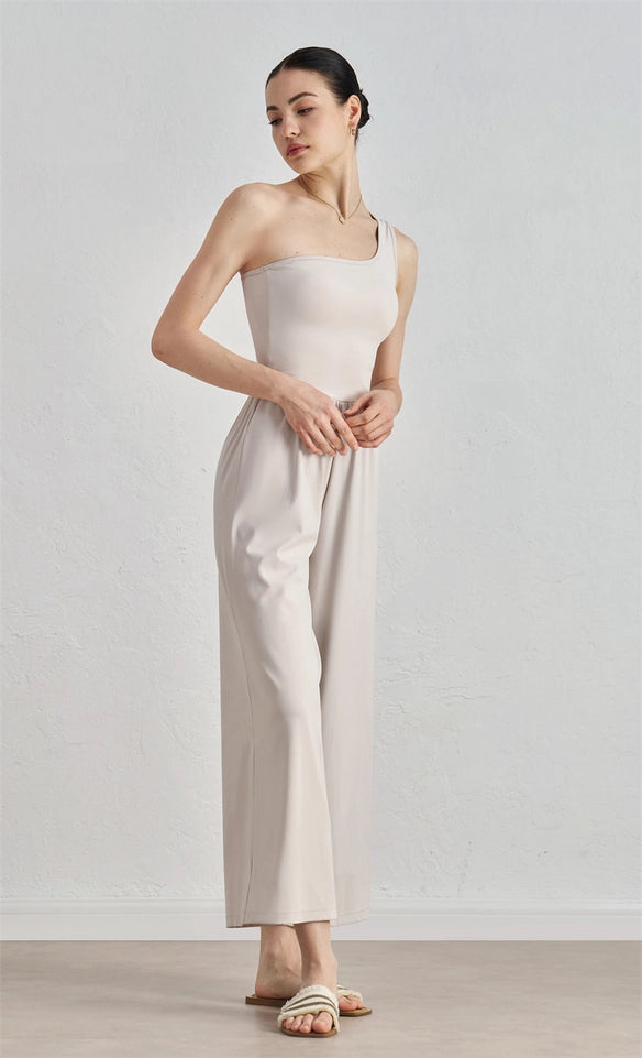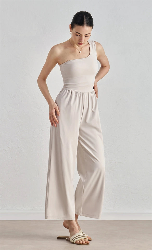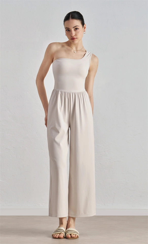 Tiffany One-Shoulder One-Piece Wide Leg Bodysuit EggShell