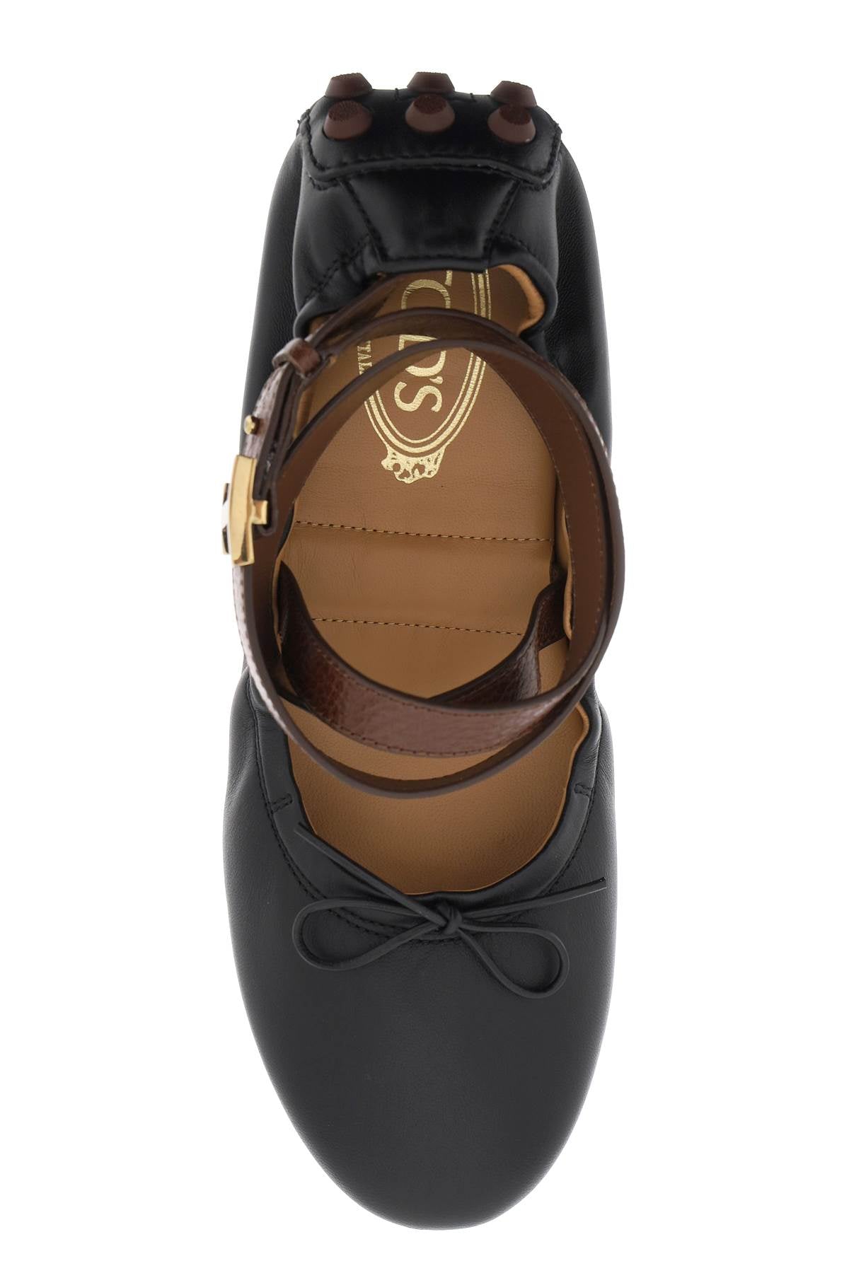 Tod's Bubble ballerinas made of soft leather with decorative bow and stretch trims. Finished with removable ankle strap in contrasting grained leather with buckle featuring gold-tone metal T Timeless buckle. Leather lining, iconic grommets running from sole to heel.