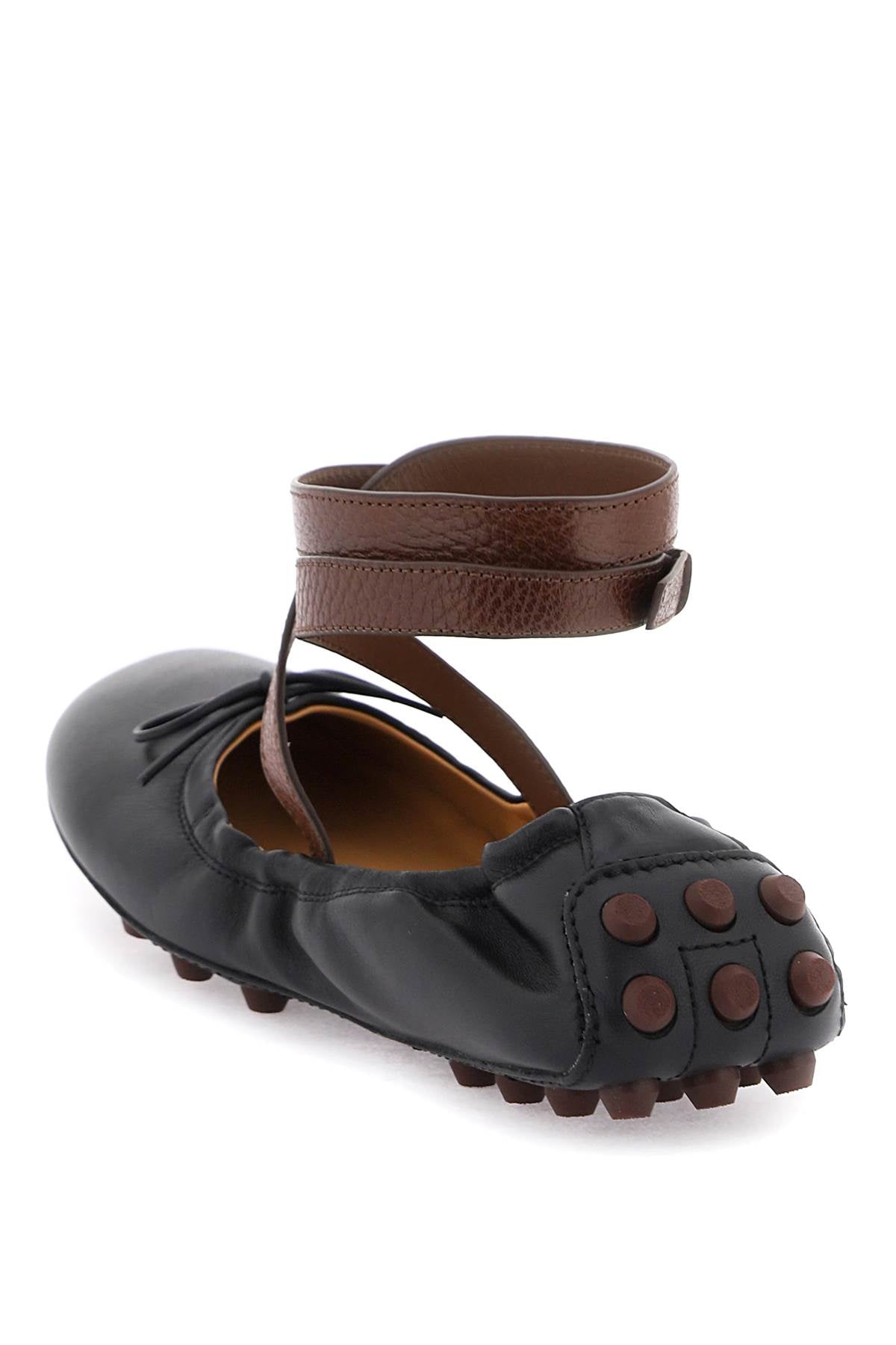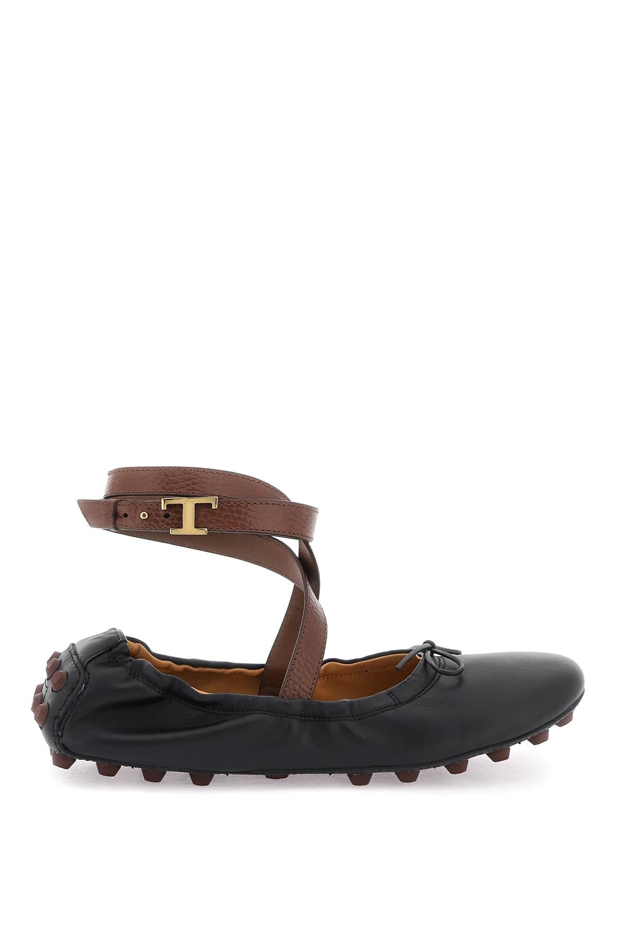 Tod'S Bubble Leather Ballet Flats Shoes With Strap