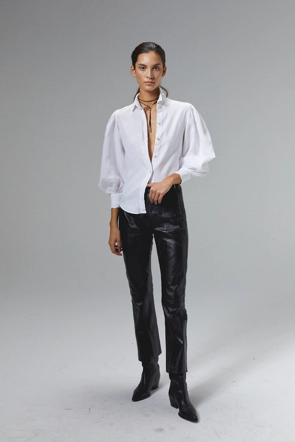 Introducing our latest essential piece - the Tori Leather Pants in Black. Made with the softest sheep nappa leather, this minimal pant features a side silver zipper and hem slits for a sleek look. The inside elastic waistband ensures all-day comfort. Perfect paired with our Samba Cotton Poplin Shirt. Made in India.