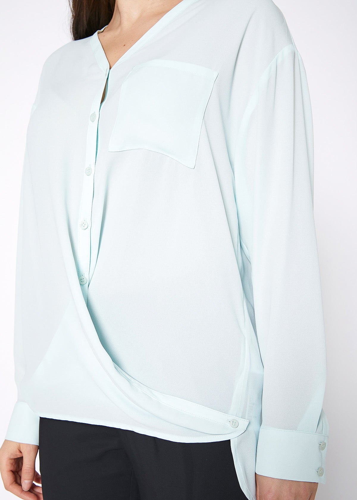 V-Neck Wrap Hem Blouse