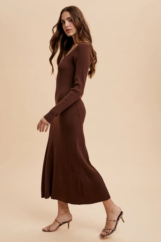 Viscose Blend Knitted Maxi Sweater Dress CHESTNUT