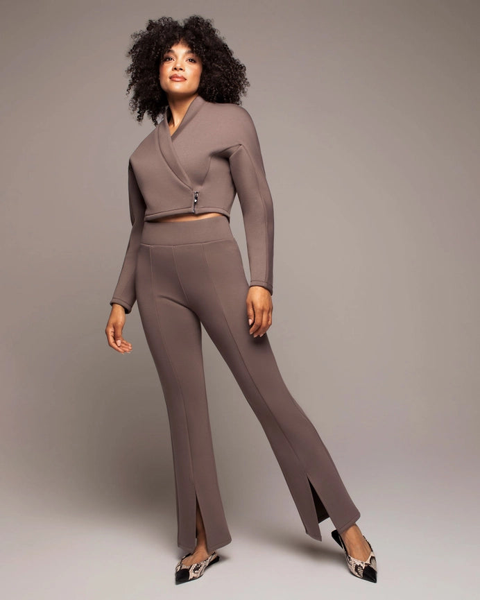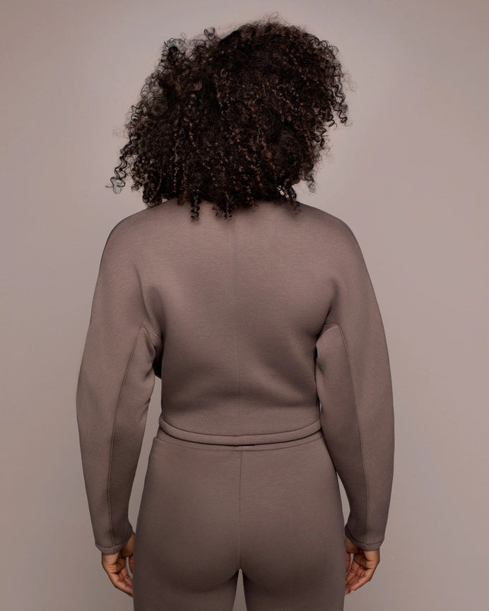 Elevate your wardrobe with the Volta Wrap Jacket, designed with a Japanese-inspired silhouette and crafted with soft, yet structured scuba fabric. Its sweat-wicking and wrinkle-resistant properties make it a practical addition to your wardrobe. With a wrap-front design and kimono-shaped sleeves, this jacket offers a modern twist on a classic silhouette. Made in Canada.