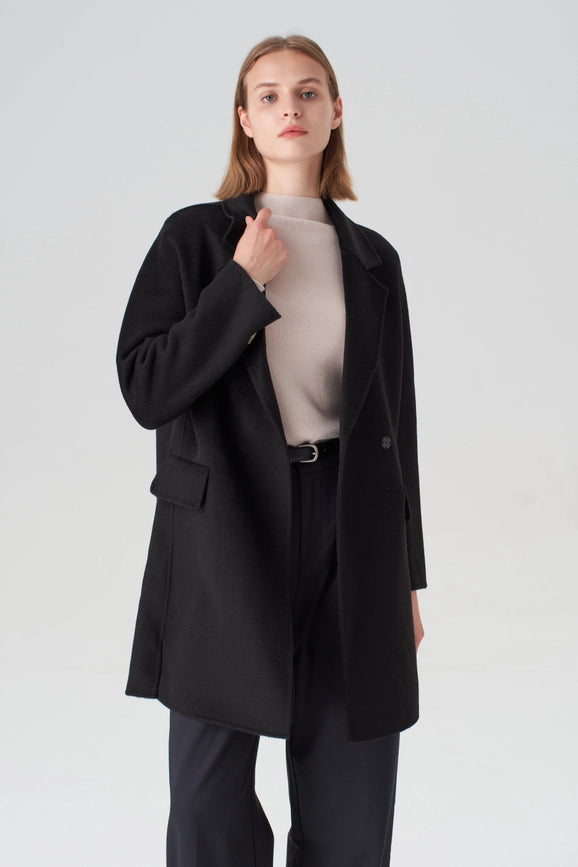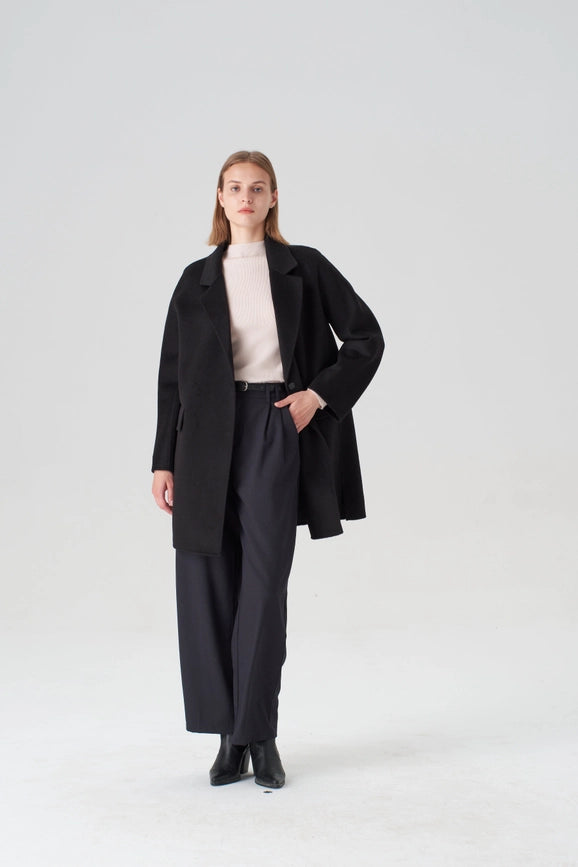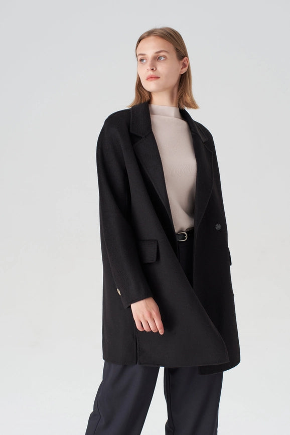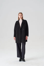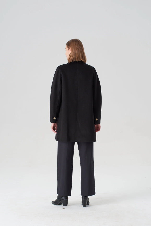 Experience the perfect blend of functionality and luxury with our Black Walking Coat. Made with 20% cashmere and 80% merino wool, this hand-sewn coat features a relaxed straight silhouette, making it ideal for any occasion. With a true-to-size fit and professional dry clean only, this coat is a must-have for any wardrobe.