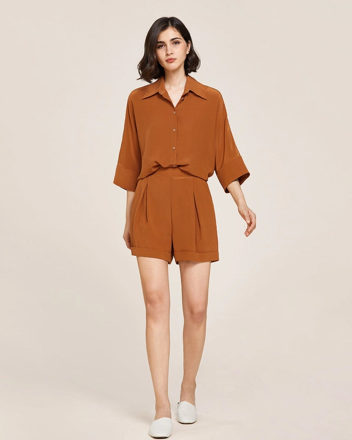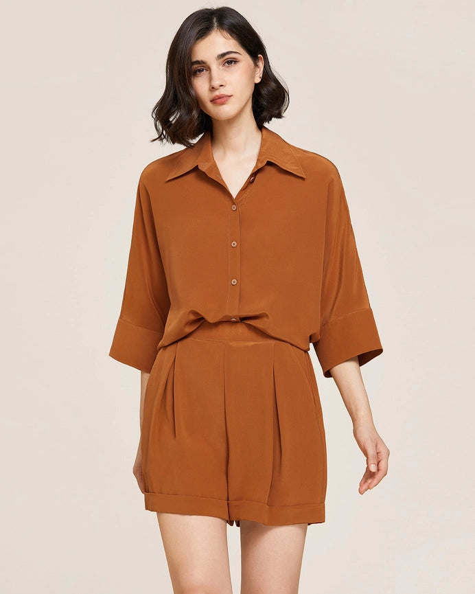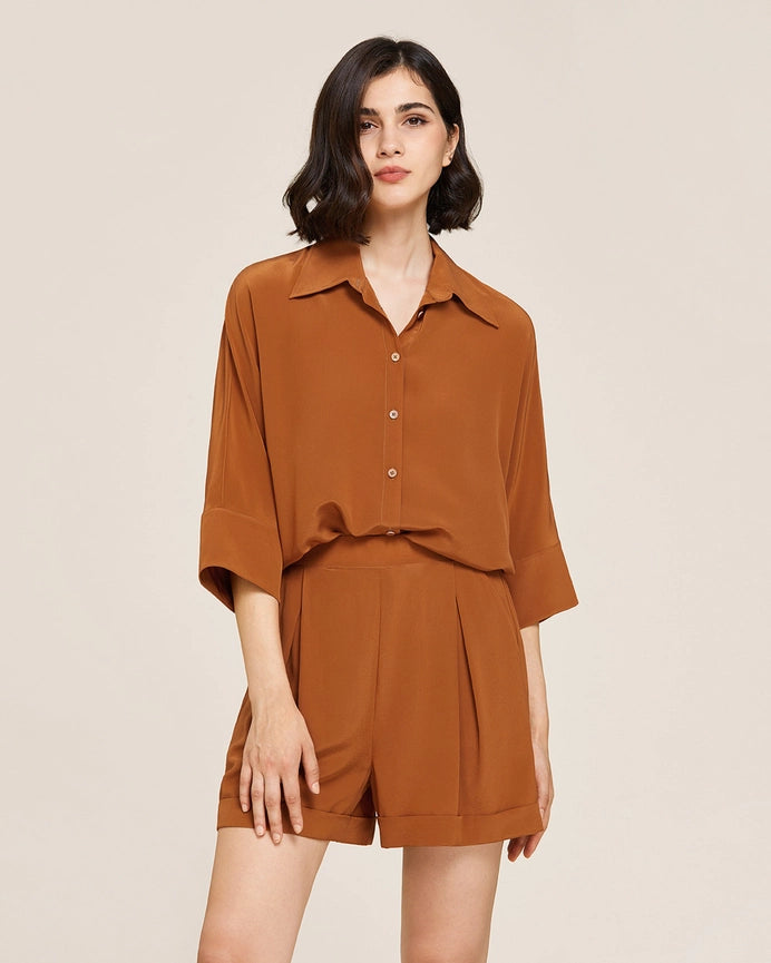 Weekend Oversize Silk Shorts Maple Syrup-Shorts-MommeSilk-XS-Maple Syrup-Urbanheer