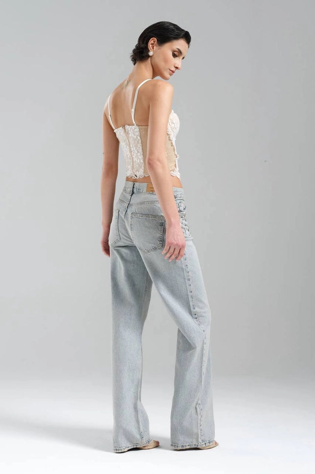 White Corset Blouse with Cotton Lace and Front Ribbon Tie