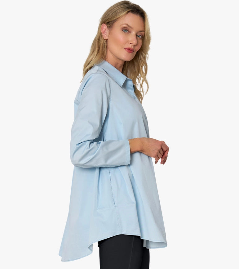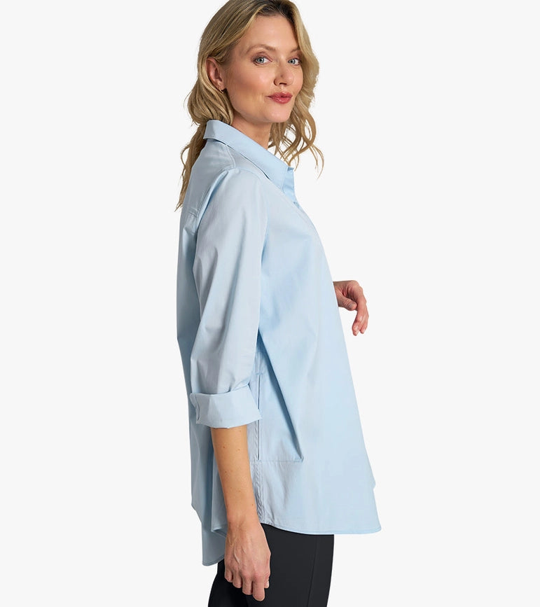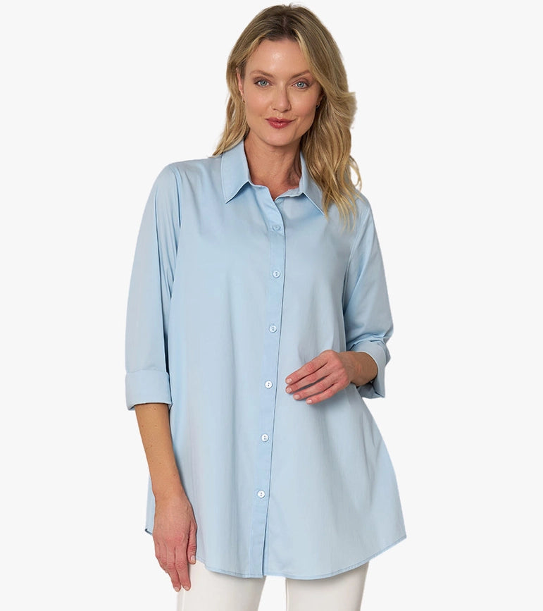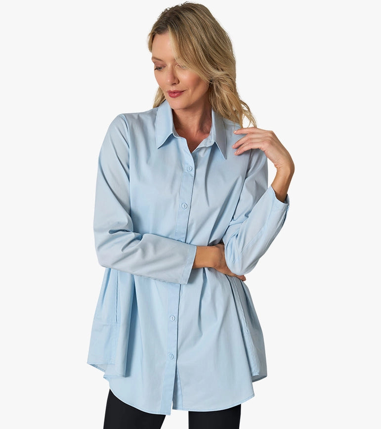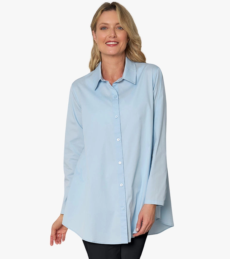 Women's Long Sleeve A-Line Button Front Prime Time Tunic CHAMBRAY
