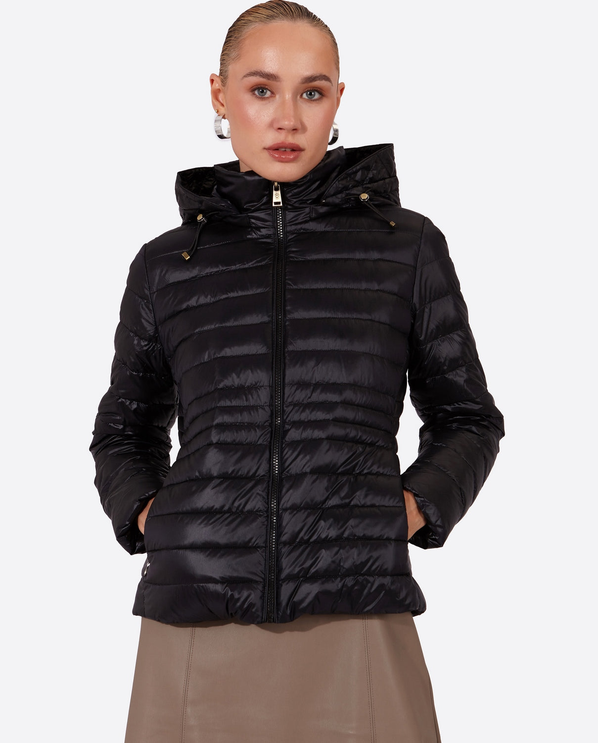 As a down jacket expert, I recommend the Women's HALLEY short down jacket. With a detachable hood and exposed zippered pockets, this jacket provides practicality and style. The 90% down and 10% feather filling ensures warmth and the 60 cm length offers full coverage. Zip up and stay cozy with HALLEY.