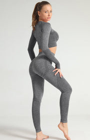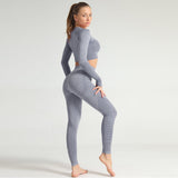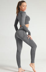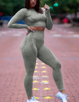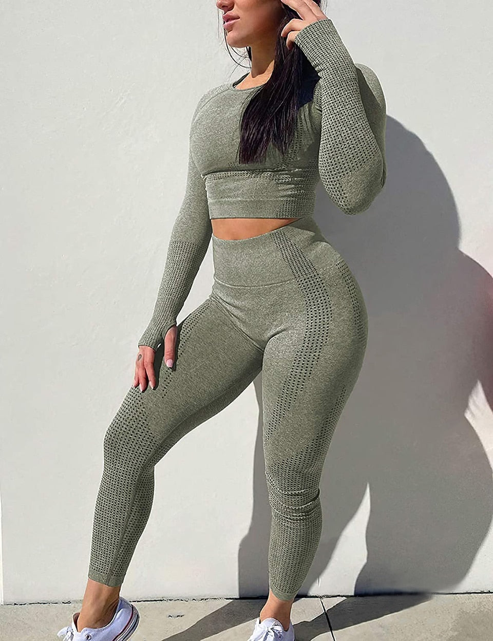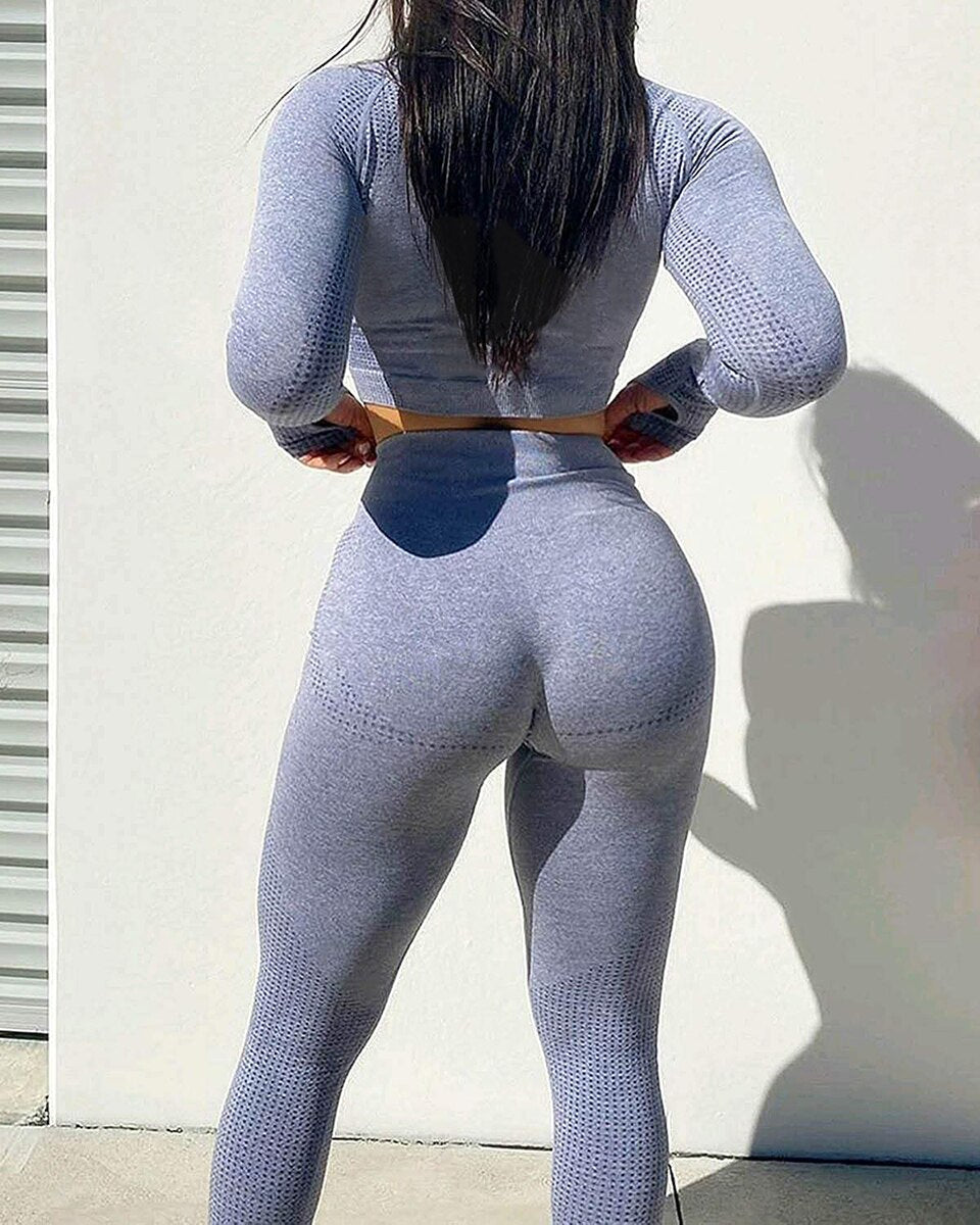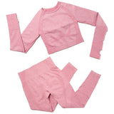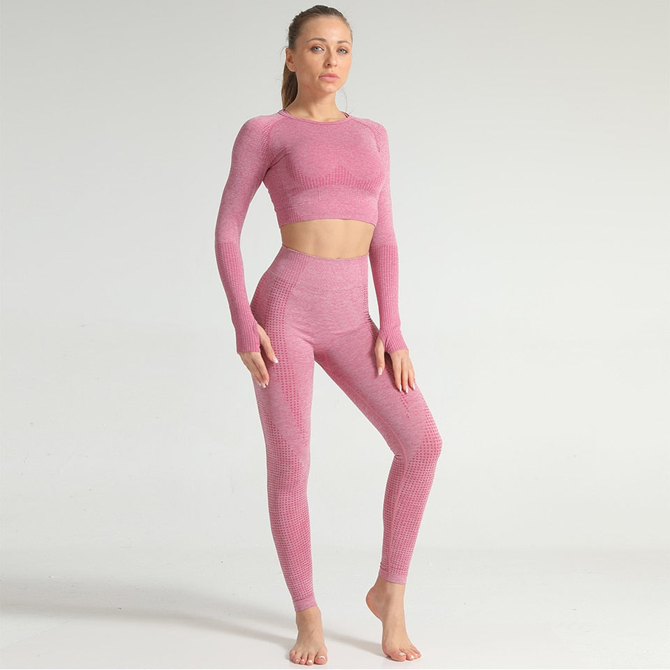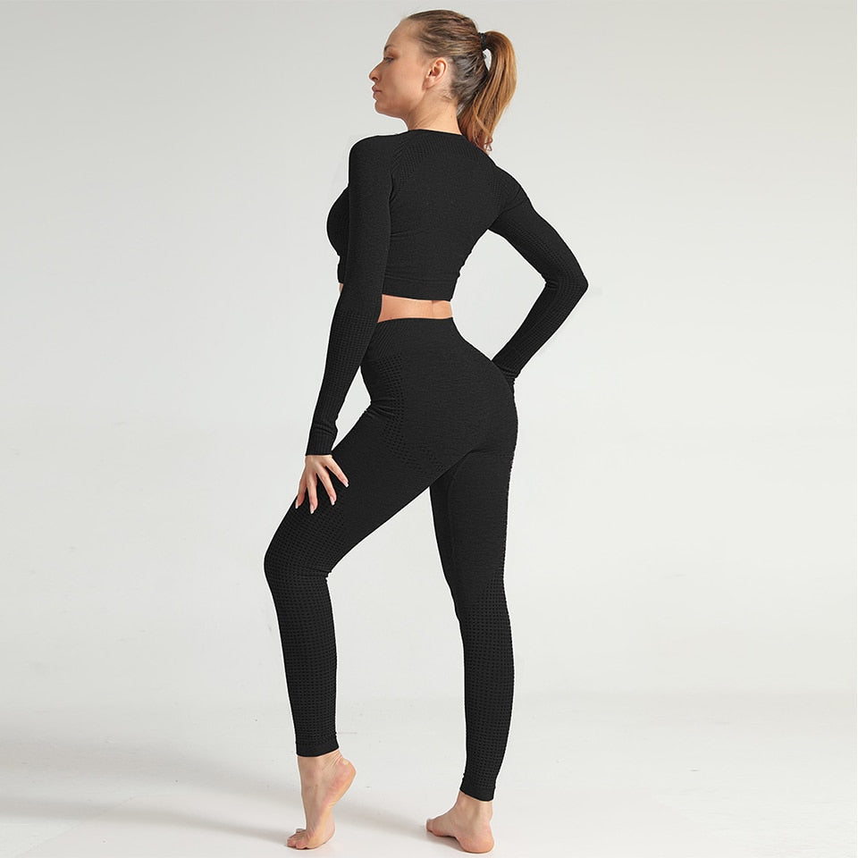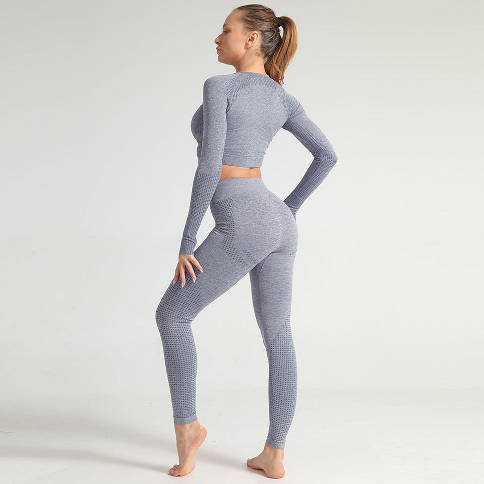 Yoga Set Women 2pcs Sport Suit Gymwear Workout Outfits Long Sleeve Fitness Crop Top High Waist Seamless Leggings Sportswear