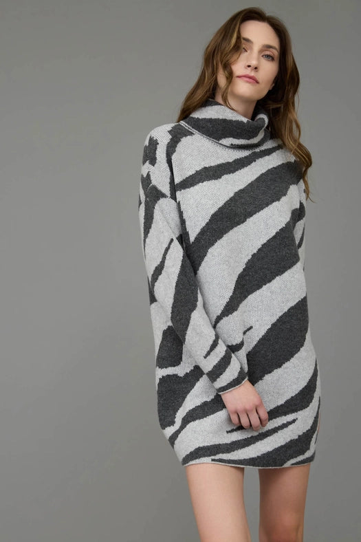 Zebra Print Turtleneck Long Sleeve Sweater Dress GREY